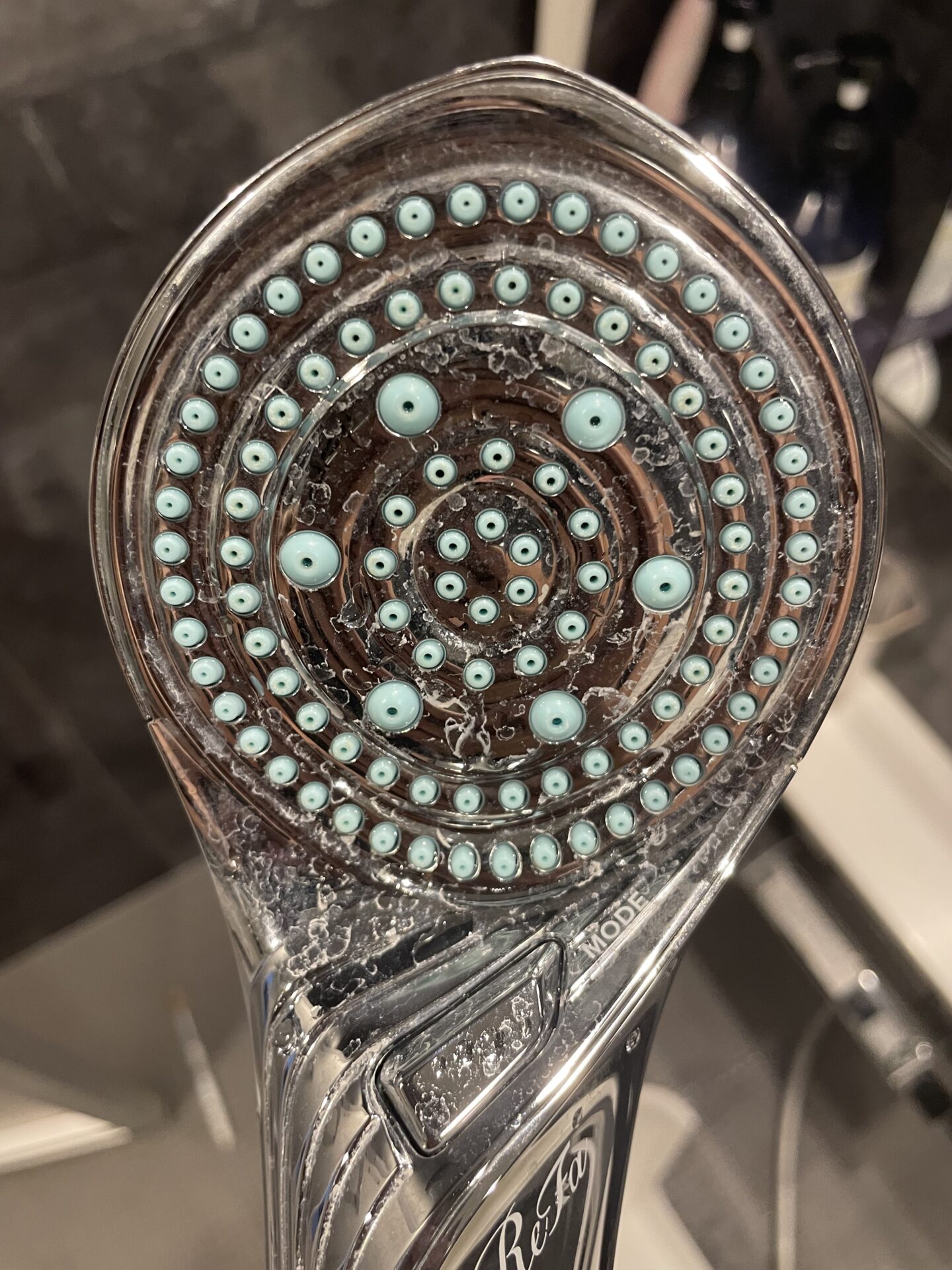 入居してからずっと、エプロンの中はピカピカなのに、シャワーヘッドは放置。